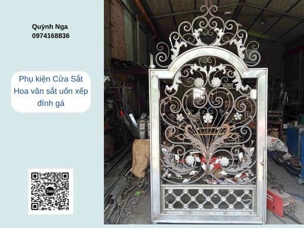 Hoa văn đính gá có nhiều kiểu dáng: uốn cong, xoắn, lá, họa tiết cổ điển – hiện đại… giúp thợ cơ khí dễ dàng lựa chọn hoặc phối hợp để tạo nên bộ cửa theo phong cách riêng.